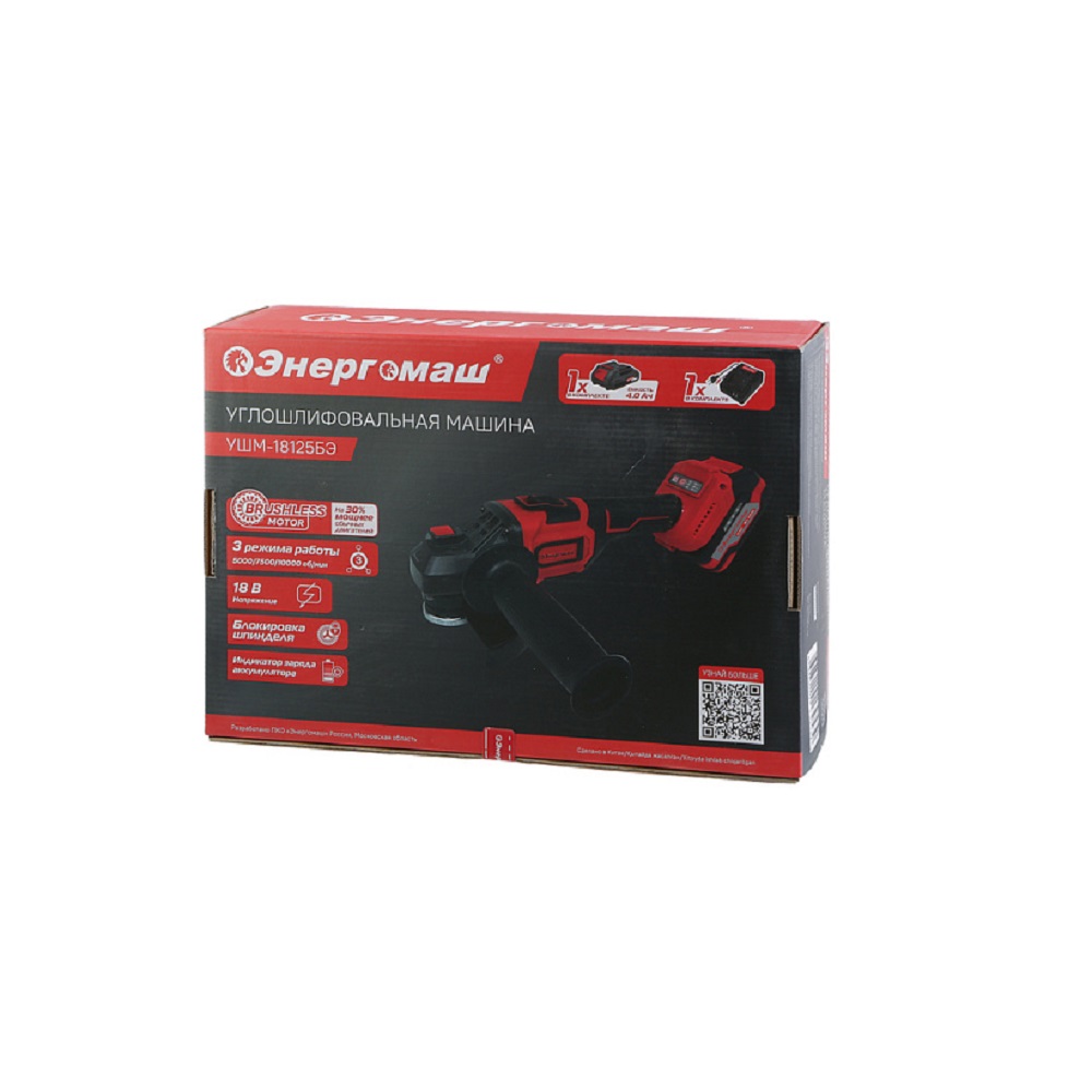 Аккумуляторная угловая шлифмашина Энергомаш УШМ-18125БЭ