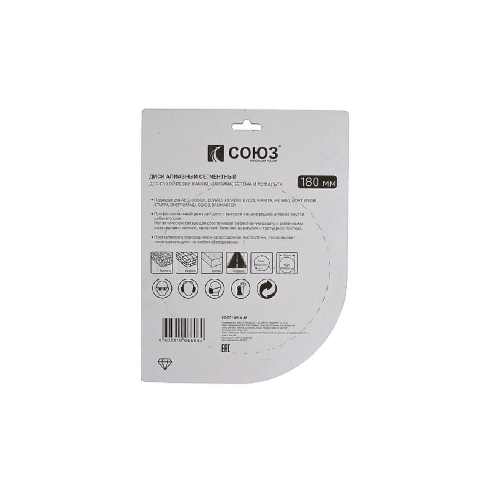 Расходные материалы для Алмазный сегментный диск СОЮЗ 9020-04-180x22С
