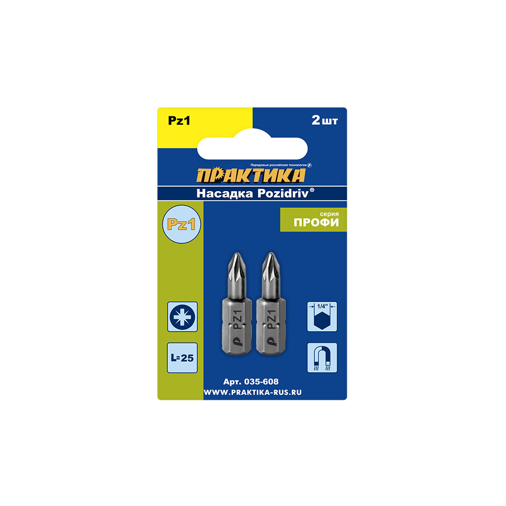 Бита отверточная ПРАКТИКА "Профи" PZ-1 х 25мм 035-608