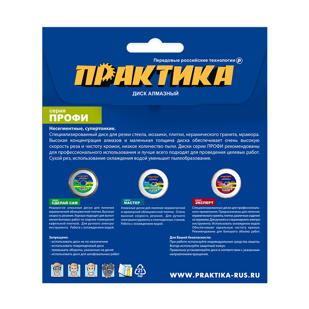Диск алмазный сплошной ПРАКТИКА 917-018