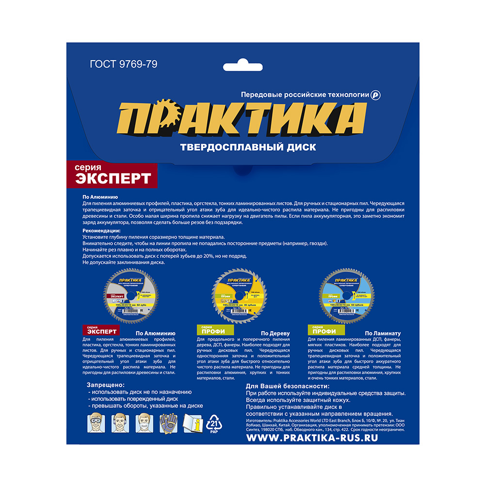 Расходные материалы для Диск пильный твердосплавный по алюминию ПРАКТИКА 922-050