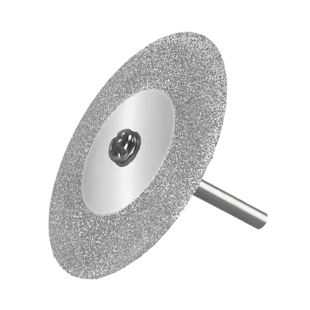На диски алмазное покрытие нанесено по технологии - гальваническая пайка. В наборе 2 диска, диаметром 40 мм. и хвостовик 3 мм.