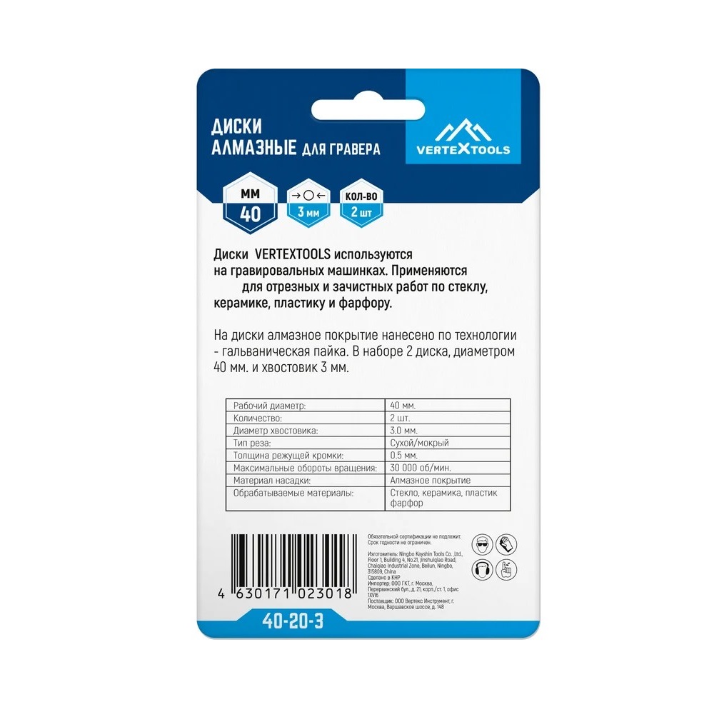 Расходные материалы для Диски алмазные для гравера VERTEX 40-20-3