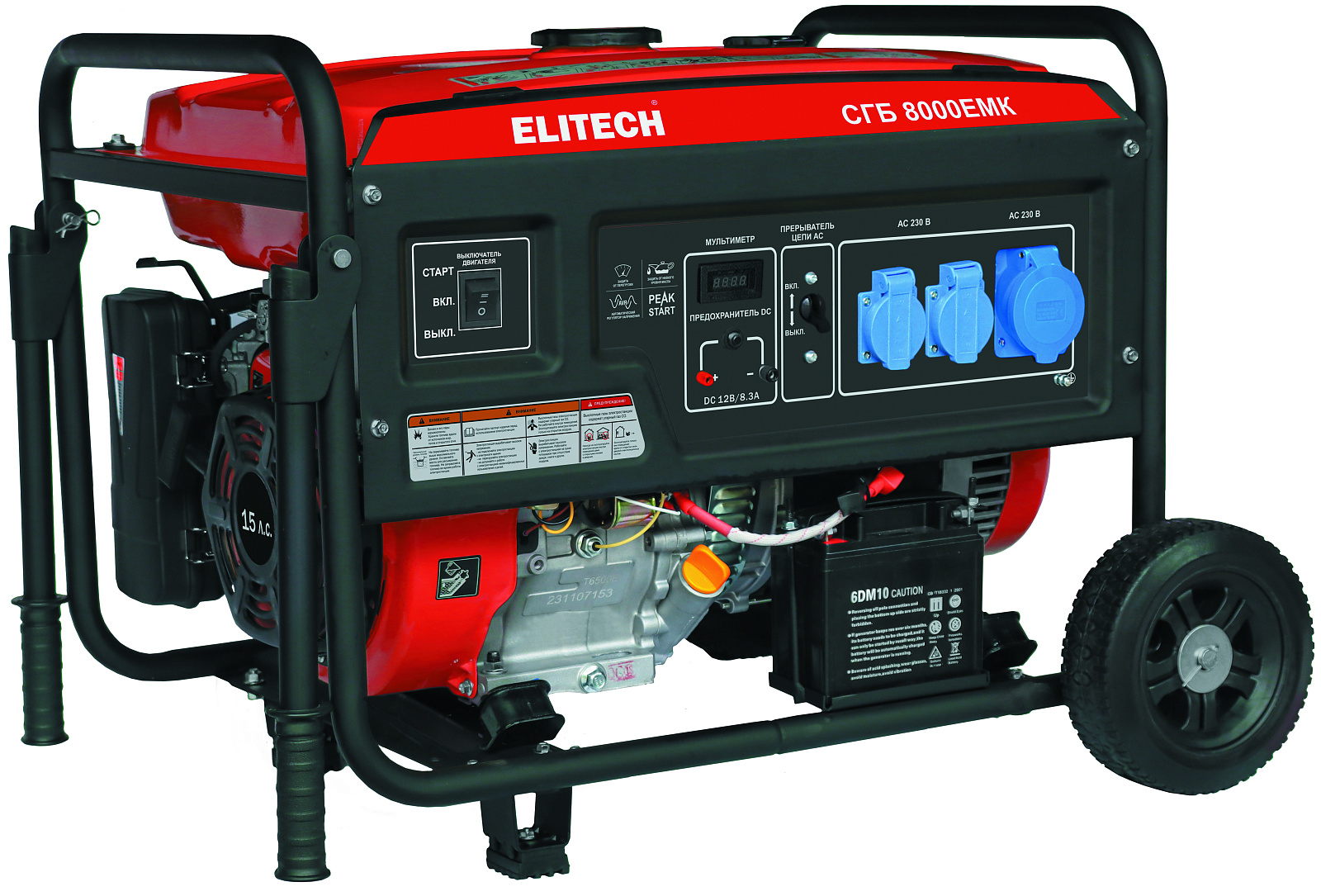 Бензиновая электростанция ELITECH СГБ 8000ЕМК мощностью 6,5 кВт (6 кВт), с электростартером и объемом топливного бака 25 л предназначена для работы в качестве автономного источника электроэнергии переменного однофазного тока напряжением 230 В и частотой 50 Гц.