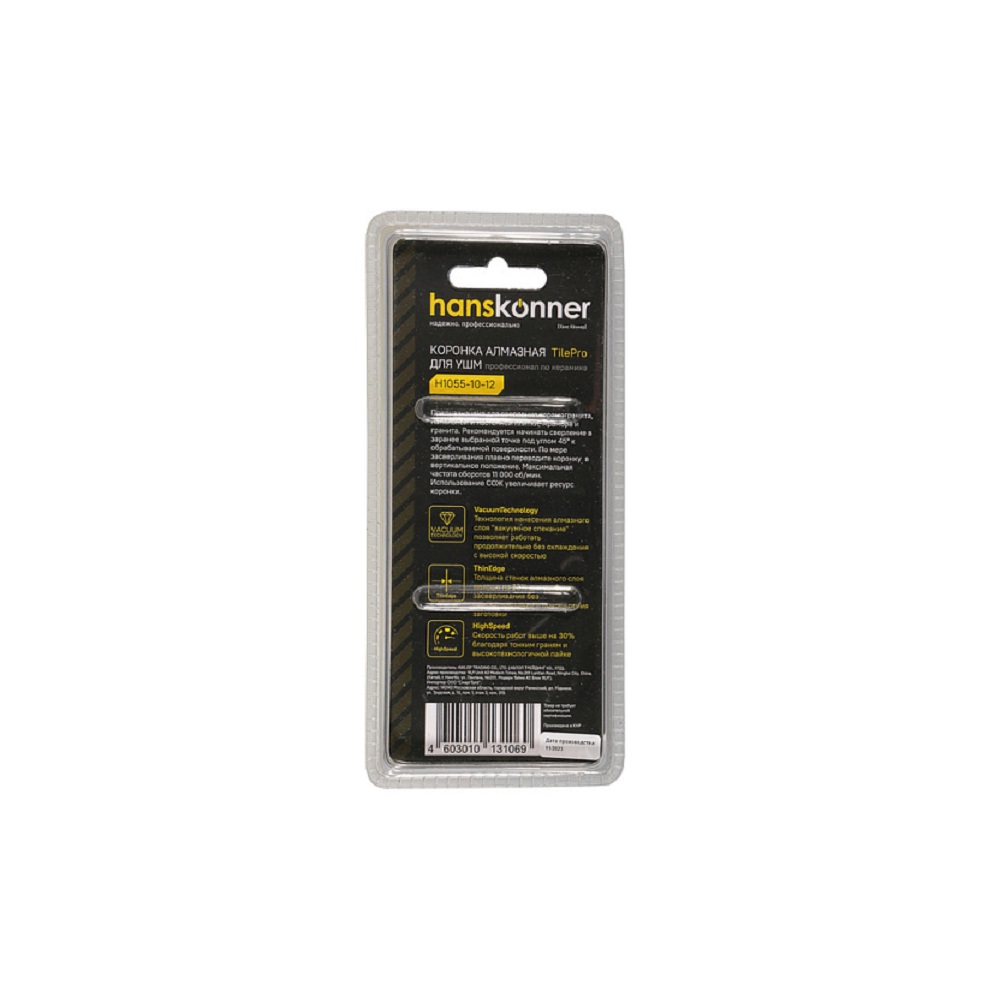Расходные материалы для Коронка алмазная для УШМ Hanskonner H1055-10-12