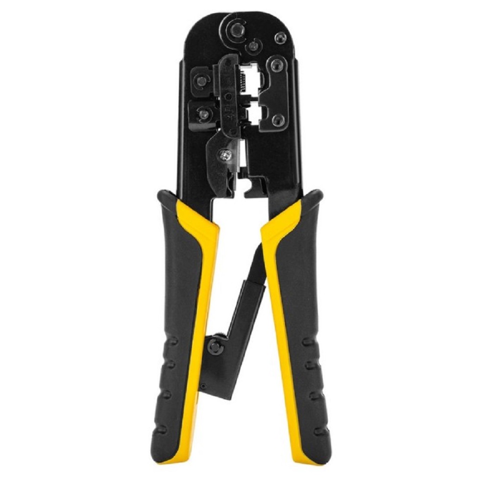 Назначение. Обжимные клещи DELI DL4971 4P, 6P, 8P 98342 подходят для профессионального использования. Клещи изготовлены из холоднокатаного стального листа углеродистой стали с чёрной отделкой. Материал обладает высокой прочностью и долговечностью. Благодаря двухкомпонентной ручке с храповым механизмом уменьшается усталость при работе с инструментом. Подходит для витой пары UTP / STP и телефонных кабелей, 4P, 6P , 8P.