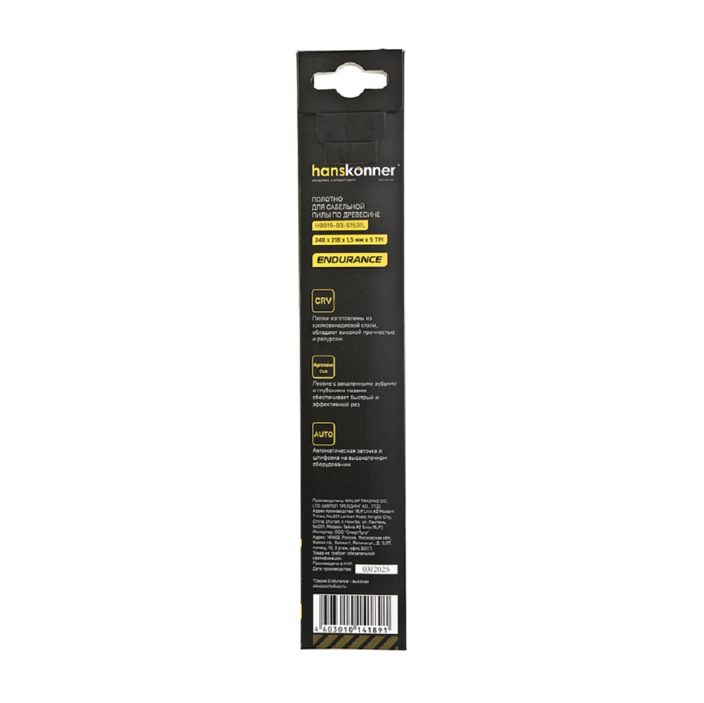 Расходные материалы для Полотно для сабельной пилы по дереву Hanskonner H9019-03-S1531L