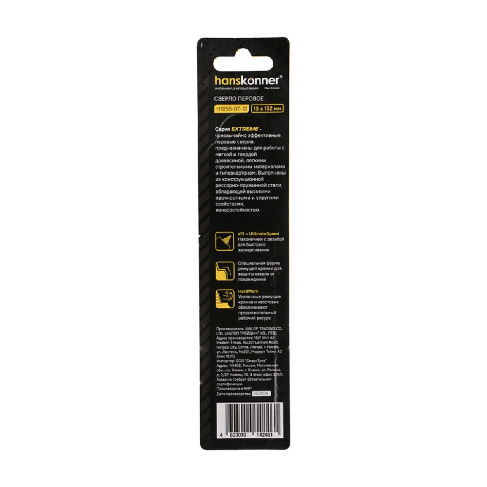 Расходные материалы для Сверло перьевое по дереву Hanskonner H1055-07-13