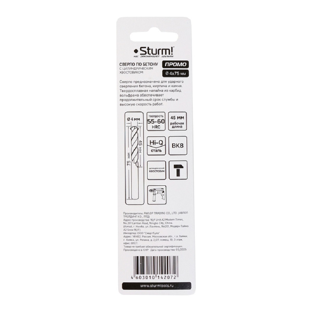 Расходные материалы для Сверло по бетону STURM 1055-06-04x75SP