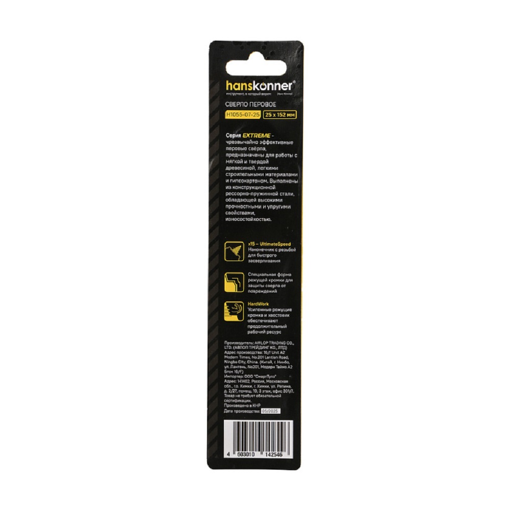 Расходные материалы для Сверло по дереву перьевое Hanskonner H1055-07-25