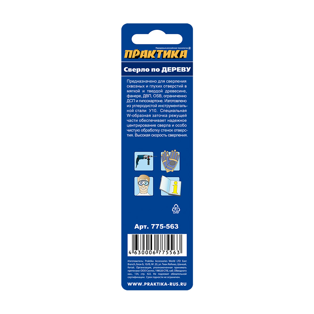 Расходные материалы для Сверло по дереву ПРАКТИКА 775-563