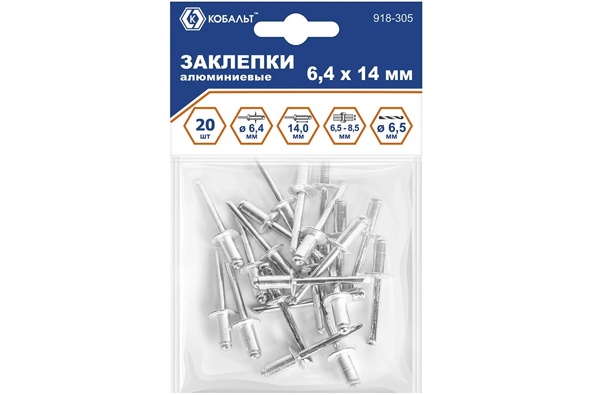 Заклепки вытяжные алюминиевые КОБАЛЬТ 918-305